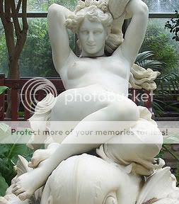 Italian marble statue of Galatea within the Avery Hill conservertory hot house collection of temperate and tropical plants